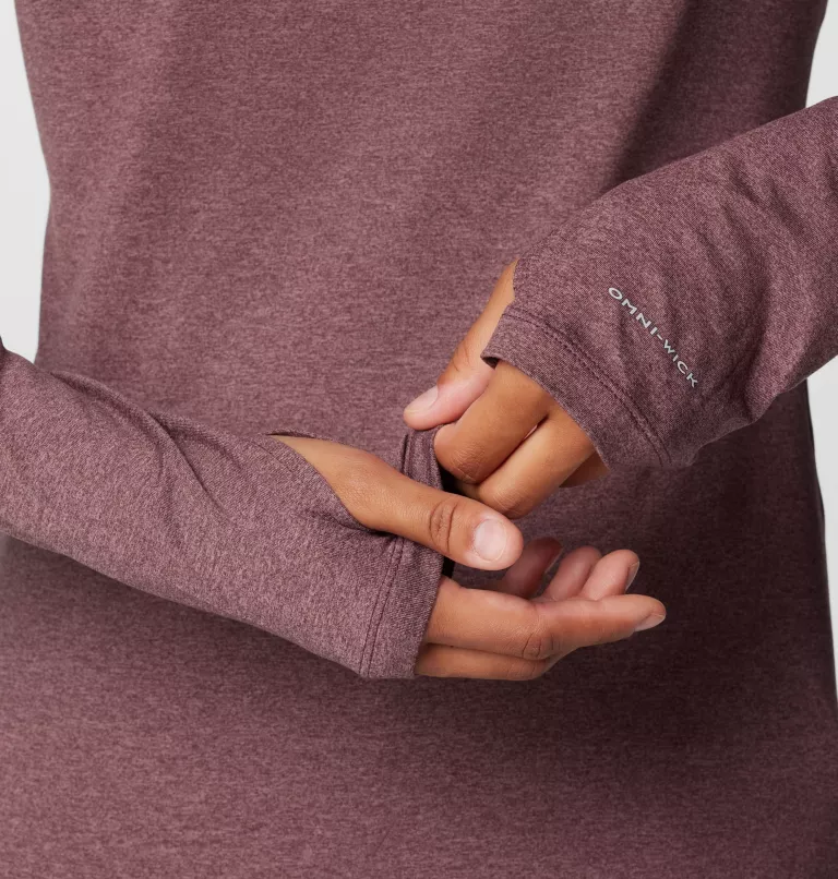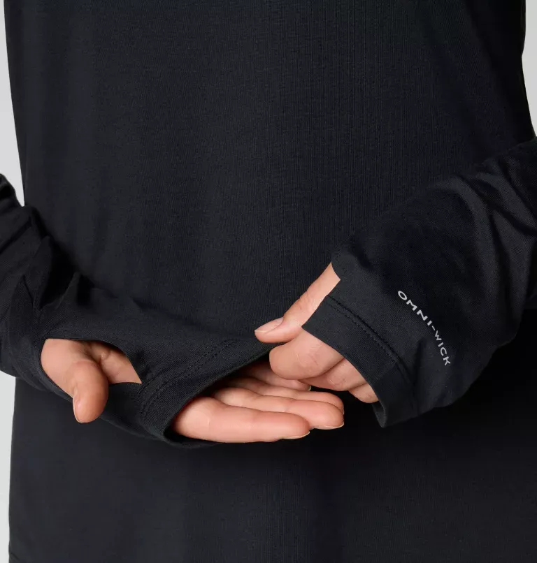 - Thumbholes on the cuffs help keep sleeves in place and add coverage over your hands