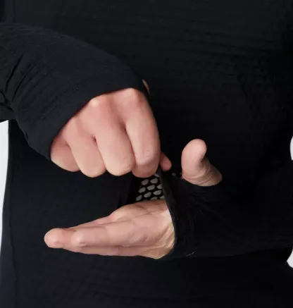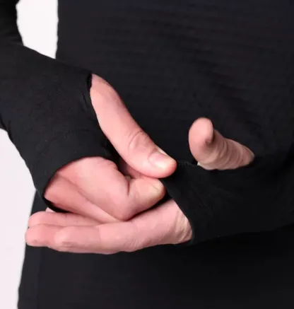 - Thumbholes on the cuffs help keep sleeves in place and add coverage over your hand