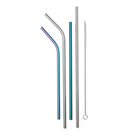 Never throw away another plastic straw while carrying this set with you. Shiny, colorful stainless steel is easy to clean with the included brush.